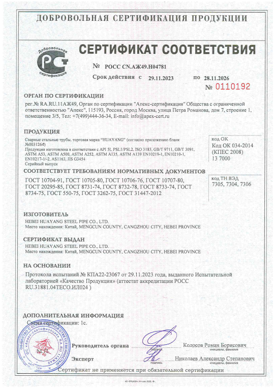 河北華洋鋼管有限公司公司創建于2005年,注冊資金5億元,公司占地面積1000余畝,固定資產12億元,年銷售收入近100億元,現有員工600余人?!叭A洋牌"高頻直焊鋼管被評為“河北省名牌產品”,年生產能力可達260萬噸,2024年河北華洋鋼管有限公司榮獲河北省百強民營企業(69位),河北省百強制造業(57位)榮譽稱號。